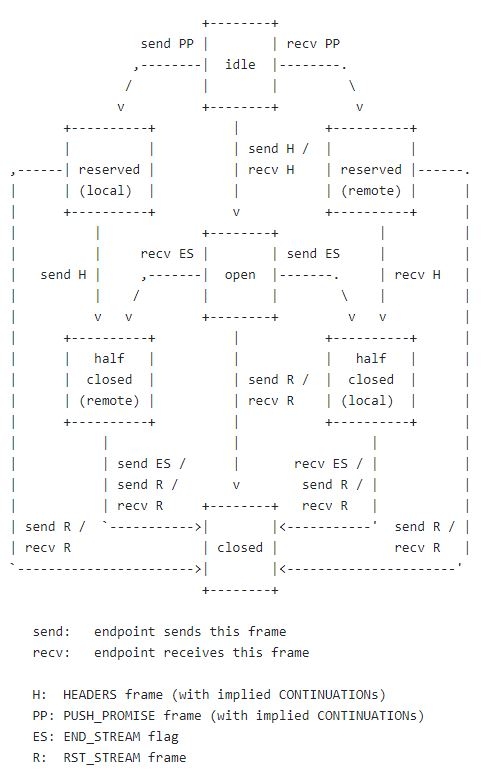 在这种状态下,端点不得发送除 HEADERS,RST_STREAM 或 PRIORITY 以外的任何类型的帧。